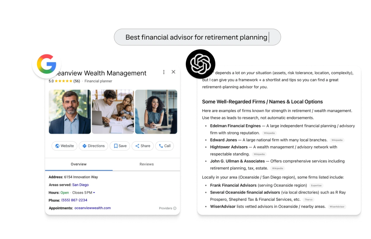 Get coverage across search engines, maps, social networks, directories, ChatGPT and